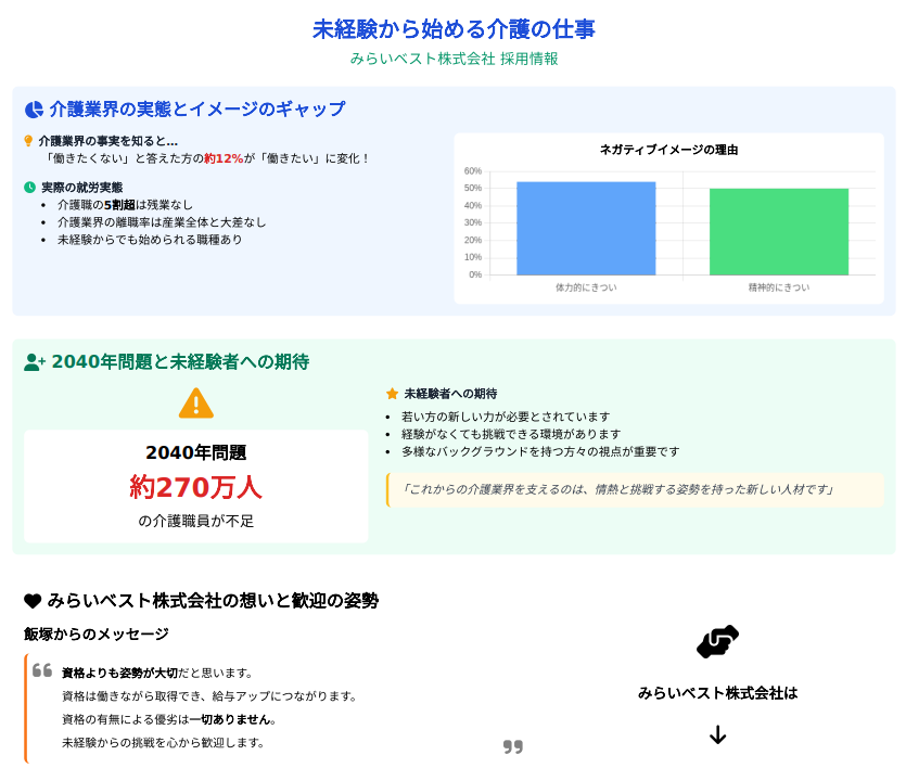 なぜ未経験の介護職員の方を応援しているかと言いますと、日本では絶対的に介護職員が不足する事が今後間違いありません。頑張りたいと思う初めの一歩を応援しています。